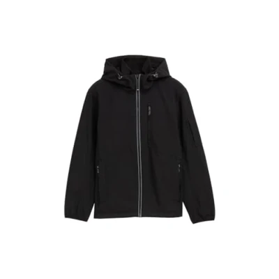 Multifunctional softshell jacket with hood. With side pockets, chest pocket, sleeve pocket and additional inside pocket. Made of a waterrepellent material and soft fleece inner material for pleasant warmth. | Outer fabric material: 100% polyester | order at Zalando.ie! Size: Large. Color: Black. Pattern: plain.