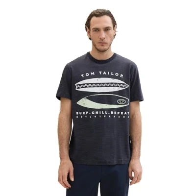 TOM Tailor Kurzarm Print Tshirt, Men's, Size: XL, Dunkelblau