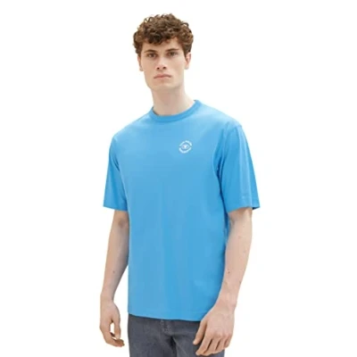 TOM TAILOR Men's Basic T Shirt with Print, 18395 Rainy Sky Blue, M