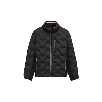 Quilted lightweight hybrid jacket with stowable hood in collar. With chest pocket, sleeve pocket, side pockets and additional inner pocket for storing mobile phone, keys or wallet. Ideal as a transitional jacket made from a water and dirt-repellent material. Fit: regular fit, back length for size M approx. 71 cm Stand-up collar with hood, long sleeves With a bionic finish: water and dirt-repellent material allows water and liquids to bead off. When air drying, turn and shake garment several times | Do not dry clean | Close all fasteners before washing | Do not bleach | Wash at 30°C | Tumble dry with tennis balls | Wash inside out | Do not iron | Do not use fabric softener | Wash with similar colours | Mild drying