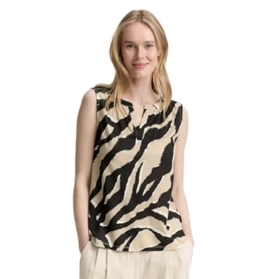 TOM Tailor V NECK Alloverprinted Top, Women's, Size: Medium, Abstract beige