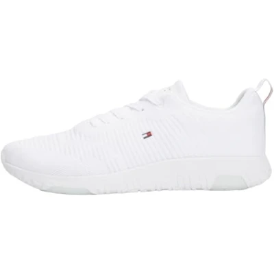 UTMOST COMFORT: These flat trainers are light and unrestricting for every-day wear. Despite their light weight, they provide adequate foot support. IDEAL FIT: Thanks to the knit upper, these original Tommy Hilfiger trainers adapt to the shape of the foot. The loop on the heel makes it easy to slip into and out of the shoes. FOR ANY OCCASION: These casual trainers can be effortlessly combined with a relaxed leisure look. Whether you’re on your feet for hours or sitting around, the light and breathable material leaves you feeling good all day long. PREMIUM MATERIAL: The shoe’s upper and lining are made from 100% recycled polyester, and the sole is ethylene-vinyl acetate and natural rubber. PROVEN QUALITY: The designer brand has been captivating the global fashion industry with its high-quality and lightweight designs in a wide range of styles in its famous dark blue, white and red colours since 1985.
