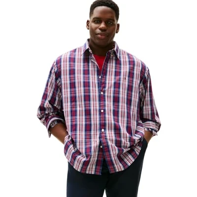 Tommy Hilfiger Men's L/S Shirt, Blue (Preppy Navy/Check), XXL Plus