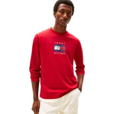 Tommy Hilfiger Men's L/S T Shirt, Red (Medium Red), S