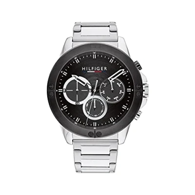 Tommy Hilfiger Men Watch with Stainless Steel Bracelet, Black, Clock