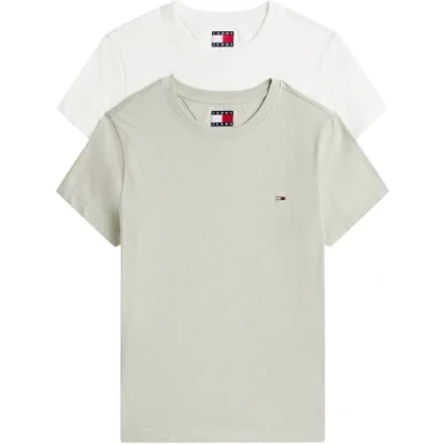 Tommy Jeans C NECK TEE 2 PACK Basic Tshirt, Women's, Size: 4, Ecru / misty sage