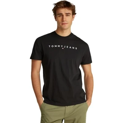 Tommy Jeans Linear LOGO TEE Basic Tshirt, Men's, Size: 36/38, Black