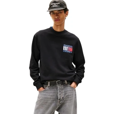 Tommy Jeans Regular FLAG CREW Sweatshirt, Men's, Size: 36/38, Black