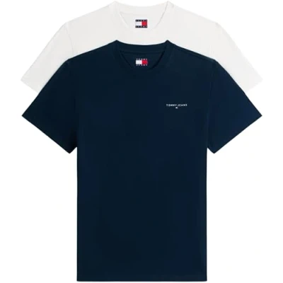 Tommy Jeans SLIM Linear TEE 2 PACK Basic Tshirt, Men's, Size: 46, Ecru/dark night navy