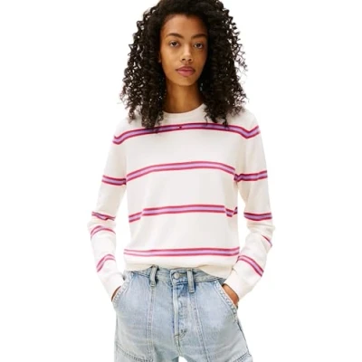 Tommy Jeans Women's Pullover Sweater, White (Ancient White/Stripe), L