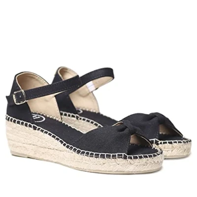 AmazonTONI PONS BILMA-L - Vegan Espadrille for Women made of cotton fabric., Black/White, 39 EU