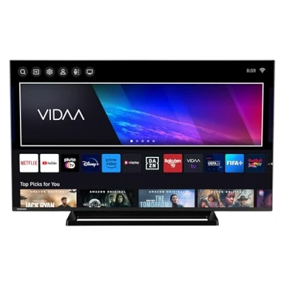 IMPRESSIVE IMAGES - Experience content in Full HD resolution. The TV also supports HDR 10 including HLG, as well as TRU Resolution & TRU Micro Dimming, delivering particularly high-contrast images wit LIMITLESS ENTERTAINMENT - Be inspired by the diverse offerings of the VIDAA Smart TV. Whether it's a series marathon, movie night, or thrilling sporting events - you have access to countless apps and SMART CONTROL - Seamlessly connect VIDAA Voice with Alexa-enabled smart speakers to control your Toshiba VIDAA TV with voice commands (an additional smart speaker is required). Changing channels, adju VERSATILE POSSIBILITIES - Numerous connections such as 2x HDMI, USB with media player as well as WLAN & Bluetooth offer sufficient usage options for consoles, DVD players, external sound devices and m