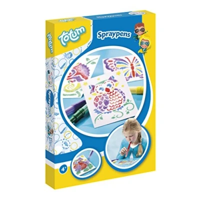 Great spray pens in red, purple, yellow, green and blue you can create cool pictures Create beautiful pictures like an owl, a chameleon, a butterfly and a fish Vary with the different colors and you have a great picture in the fancy speckled look Promotes creativity and fine motor skills in your child Suitable for children from 4 years, Manufacturer: Totum