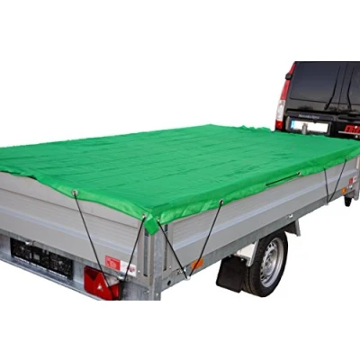 Trailer net, fabric net, green 1500 x 2700 mm Fabric thickness: 1.8 mm With all-round expander rope Packed in a polybag