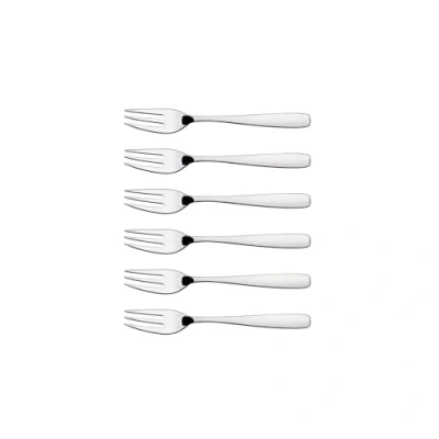 Contents: 6 dessert forks. Sleek contemporary design, equally suited to casual everyday use as well as special occasions. Polished stainless steel. Dishwasher safe. Part of a larger comprehensive range making it easy to build up a collection suited to your own specific needs. Stylish packaging – ideal for gifting.