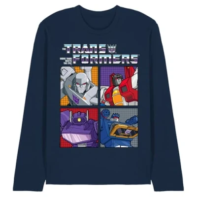 Transformers Generations Retro Villainous Decepticon Grid Unisex Long Sleeve T Shirt, Navy, Medium