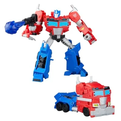 OPTIMUS PRIME 2 IN 1 TRASNFORMERS TOY: This Optimus Prima action figure is both a toy robot and a toy truck CHANGE BETWEEN MODES IN 13 STEPS - Boys and girls can convert this Transformers action figure from robot mode to truck mode in 13 steps ACTION 12.5CM ROBOT FIGURES: 12.5cm tall in robot mode, the Optimus Prime Transformers action figure is perfect for action-packed fun ICONIC TRUCK MODE - Swivel wheels allow boys and girls to imagine epic battles in toy truck mode. A fun toy for toy car lovers and lovers 2 CONNECTABLE ACCESSORIES IN BOTH MODES: Includes a blaster accessory and an Energon explosive effect, Manufacturer: Hasbro