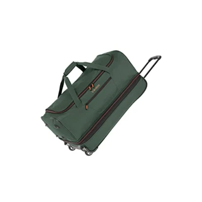 BASICS: The trolley travel bags are the perfectly organized space miracle: thanks to their material and volume flexibility, they are versatile and can be used for (car) travel, as a sports bag, for visits to clinics, swimming pools and spas INTERIOR: The large main compartment with large opening and 2-way zipper and the bottom compartment offer enough storage space and at the same time provide some room for separation. The expansion pleat provides additional volume PRACTICAL: The 2 smooth-running wheels make transportation easy. The flexible material and the fully retractable light metal telescopic handle make the bag easy to stow away SCOPE OF DELIVERY: 1 x travel trolley with 2 wheels; dimensions 38 x 70 x 37 cm; volume 98 liters (can be expanded to 119 liters by expanding the fold) - luggage for approx. 2-3 weeks; weight 2.8 kg; material polyester; color dark green TRAVELITE: The Hamburg-based family business has been providing travelers with lightweight, robust and functional leisure and travel luggage since 1949