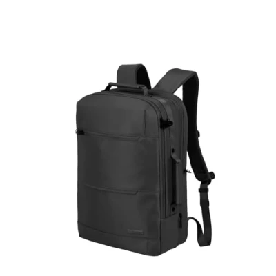 WORKFLOW: The inner lining is made from 100% recycled polyester, the outer material is 100% recycled nylon. So the backpack can be easily cleaned with a damp cloth Features: The backpack offers plenty of storage space with a padded laptop compartment (15.6 inches)/tablet compartment (12.9 inches), a separate mesh compartment for cables, a large main compartment with slip and zip pockets, a hidden security compartment on the back and two side pockets. The zips can be clicked on the side for safety Practical: the two padded ergonomic shoulder straps, the adjustable chest strap and the breathable back panel ensure comfortable wearing. In addition, the backpack is equipped with two carrying handles. Thanks to the integrated clip-on function, the backpack can also be easily attached to the frame of a trolley Box contents: 1 x travel backpack, hand luggage, aeroplane; dimensions: 46 x 31 x 17-22 cm; volume: 23-30 litres; luggage for 1-2 days; weight: 1.1 kg; colour: black (black) TRAVELITE: The family-owned company based in Hamburg has been providing travellers with lightweight, robust and functional travel and leisure luggage since 1949