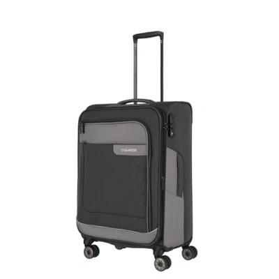 VIIA: The medium suitcase is made from 100% recycled polyester for both the soft shell and the inner lining and is an uncomplicated travel companion EQUIPMENT: With four double wheels, a height-adjustable light metal frame, additional edge protection and an integrated TSA lock, the trolley case is optimally equipped INTERIOR: The two large front pockets and the well thought-out interior division with two packing straps offer plenty of storage space. Thanks to the integrated stretch pleat, the packing volume can be easily expanded SCOPE OF DELIVERY: 1 x travel suitcase size M; dimensions: 67 x 44 x 29 - 33 cm; volume 70 liters (expandable to 80 liters); weight 2.9 kg; material recycled polyester; color slate (grey); with TSA lock TRAVELITE: The Hamburg-based family business has been providing travelers with lightweight, robust and functional travel and leisure luggage since 1949