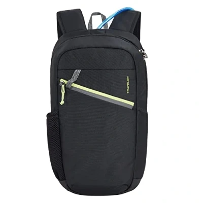 Sustainable 100% certified recycled rPET material Large locking main compartment with RFID blocking zippered pocket and 2 slip pockets ideal for smartphone and sunglasses Stress point reducing air-mesh back panel and shoulder straps for cool and comfortable carry Top port ready for water reservoir tube or headset cord. Deep, locking front zippered pocket. Expandable mesh water bottle pocket Product Size: 9"W x 16"H x 5"D, Weight 1.05 lbs.