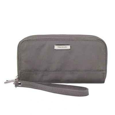 Travelon Rfid Blocking Double Zip Wallet, Smoke, 7.5 x 4 1.5, Wallet