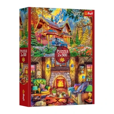 2in1 set - two 500 piece puzzles in a single package! The puzzle depicts a house on the background of a mountain and the interior of a cottage with a fireplace. Each piece of the puzzle can be used to create an image of the size of 480 x 340 mm The pieces produced from high quality environmentally friendly materials, using paper that does not reflect light A unique gift for puzzle lovers, adults and children over 10 years old. A great memory training, development of manual skills, exercise concentration, patience and insight Ready-made puzzles can be glued on the cardboard and hung on the wall - Trefl special puzzle glue is available for sale, Manufacturer: Trefl