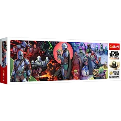 Panoramic puzzle composed of 1000 elements, ideal for puzzle lovers, will allow you to create a picture of 970 x 340 mm. The puzzle represents the heroes of the Mandalorian series and will delight all fans of the Star Wars universe. The pieces are made of high-quality materials that are environmentally friendly, with paper use that reduces light reflection Fantastic memory training, manual skill development, concentration exercise, patience and observation power A special gift for puzzle fans, for adults and kids ages 12 and up The finished puzzles can be pasted on a cardboard and hung on the wall, the special puzzle glue from the Trefl brand is now available for purchase, Manufacturer: Trefl