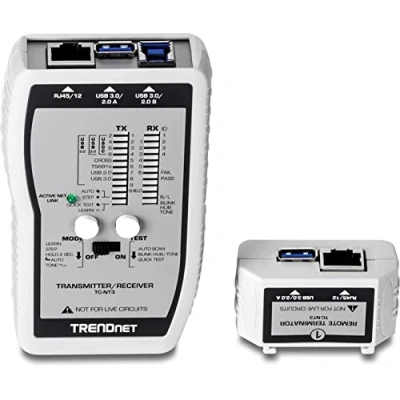Cable Tester: Comprehensive tester for network professionals Testing: Voice, data, video, and USB cables Reliability: Accurately test pin configurations for cable lengths up to 300 m Identifies: Severed, short circuit, and cross connected pins Modes: Blinking hub/switch mode identifies connected hub/switch port and quick pass/fail for large test quantities Protection: 1 Year TRENDnet Manufacturer's warranty