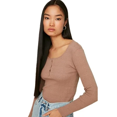Material Composition: 55% Polyester, 43% Cotton, 2% Elastane Occasion: The Mink Slim fit Blouses is perfect for Casual occasions. Our Collection offers affordable fashion for every occasion and style – from casual & relaxed to smart & elegant. Trendyol Collection translates the latest runway trends into wearable outfits for your wardrobe. Design: This Basic Knit Blouse for Women has Long sleeve Square collar Plain pattern. It is Fitted fit. If you are in between size,please size up. Wash at a maximum temperature of 30°C. Do not use bleach. Do not tumble dry. Iron at low temperature. Do not dry clean.