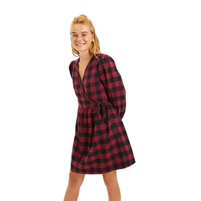 Material Composition: 53% Polyester, 24% Viscose, 23% Cotton Occasion: The burgundy Regular fit Dress is perfect for Casual/Casual occasions. Our Young Collection offers young, colorful, stylish and comfy pieces for every occasion and style with trendy designs and loving details. Trendyol Collection translates the latest runway trends into wearable outfits for your wardrobe. Design: This Woven Dress matches the latest trends. Trendyol designs casual everyday looks for everyone who like it cool and stylish. If you are in between size,please size up. Wash at a maximum temperature of 30°C. Do not use bleach. Do not tumble dry. Iron at low temperature. Do not dry clean.