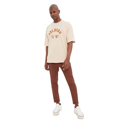 Trendyol Man Oversize Basic Crew Neck Knit T Shirt, Beige, L