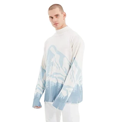 Material Composition: 100% Acrylic Occasion: The Ecru Oversize Sweater is perfect for Casual/Casual occasions. Our Collection offers affordable fashion for every occasion and style – from casual & relaxed to smart & elegant. Trendyol Collection translates the latest runway trends into wearable outfits for your wardrobe. Design: This Basic Knitwear Sweater for Male has Long sleeve High neck Landscape print pattern. It is Oversize fit. Size Conversion: XXS(US 33-34), XS(US 35-36), S(US 37-38), M(US 39-40), L(US 41-42), XL(US 43-44), 2XL(US 45-46), 3XL(US 47-48) Hand wash at a maximum temperature of 30°C. Do not use bleach. Do not tumble dry. Iron at low temperature. Do not dry clean.