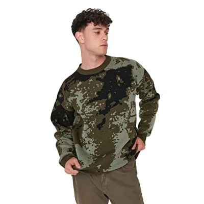 Material Composition: 100% Acrylic Occasion: The Khaki Regular fit Sweater is perfect for Casual/Casual occasions. Our Collection offers affordable fashion for every occasion and style – from casual & relaxed to smart & elegant. Trendyol Collection translates the latest runway trends into wearable outfits for your wardrobe. Design: This Basic Knitwear Sweater for Male has Long sleeve Crew neck Camouflage pattern. It is Regular fit. Size Conversion: XXS(US 33-34), XS(US 35-36), S(US 37-38), M(US 39-40), L(US 41-42), XL(US 43-44), 2XL(US 45-46), 3XL(US 47-48) Hand wash at a maximum temperature of 30°C. Do not use bleach. Do not tumble dry. Iron at low temperature. Do not dry clean.