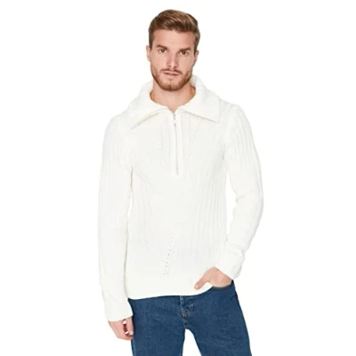 Trendyol Man Regular Basic High Neck Knitwear Sweater, Ecru, M