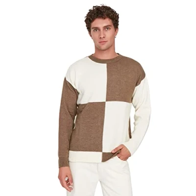 Material Composition: 80% Acrylic, 20% Polyester Occasion: The Camel-Ecru Oversize Sweater is perfect for Casual/Casual occasions. Our Collection offers affordable fashion for every occasion and style – from casual & relaxed to smart & elegant. Trendyol Collection translates the latest runway trends into wearable outfits for your wardrobe. Design: This Knitwear Sweater matches the latest trends. Trendyol designs casual everyday looks for everyone who like it cool and stylish. If you are in between size,please size up. Hand wash at a maximum temperature of 30°C. Do not use bleach. Do not tumble dry. Iron at low temperature. Do not dry clean.
