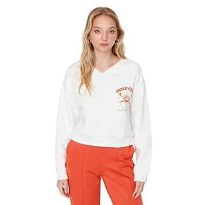 Material Composition: 58% Cotton, 34% Polyester, 8% Viscose Occasion: The Ecru Regular fit Sweatshirt is perfect for Casual occasions. Our Collection offers affordable fashion for every occasion and style – from casual & relaxed to smart & elegant. Trendyol Collection translates the latest runway trends into wearable outfits for your wardrobe. Design: This Knit Sweatshirt matches the latest trends. Trendyol designs casual everyday looks for everyone who like it cool and stylish. If you are in between size,please size up. Wash at a maximum temperature of 30°C. Do not use bleach. Do not tumble dry. Iron at low temperature. Do not dry clean.