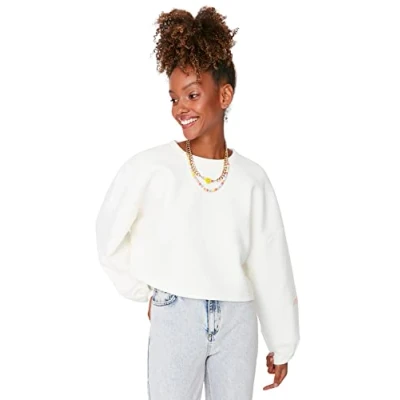 Material Composition: 60% Cotton, 35% Polyester, 5% Elastane Occasion: The Ecru Relaxed fit Sweatshirts is perfect for Casual/Casual occasions. Our Young Collection offers young, colorful, stylish and comfy pieces for every occasion and style with trendy designs and loving details. Trendyol Collection translates the latest runway trends into wearable outfits for your wardrobe. Design: This Basic Knit Sweatshirt for Female has Long sleeve Crew neck Slogan pattern. It is Relaxed fit fit. If you are in between size,please size up. Wash at a maximum temperature of 30°C. Do not use bleach. Do not tumble dry. Iron at low temperature. Do not dry clean.
