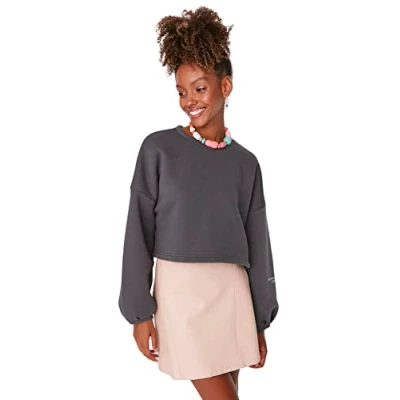 Material Composition: 60% Cotton, 35% Polyester, 5% Elastane Occasion: The Smoky Relaxed fit Sweatshirts is perfect for Casual occasions. Our Young Collection offers young, colorful, stylish and comfy pieces for every occasion and style with trendy designs and loving details. Trendyol Collection translates the latest runway trends into wearable outfits for your wardrobe. Design: This Basic Knit Sweatshirt for Female has Long sleeve Crew neck Slogan pattern. It is Relaxed fit fit. If you are in between size,please size up. Wash at a maximum temperature of 30°C. Do not use bleach. Do not tumble dry. Iron at low temperature. Do not dry clean.