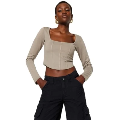Trendyol Women Fitted Basic V Neck Knit Blouse, Stone, M