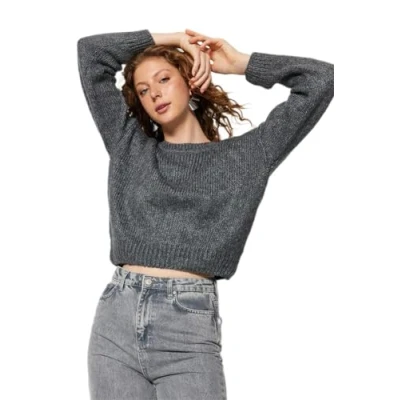 Trendyol Women Oversize Basic Crew Neck Knitwear Sweater, Anthracite, M