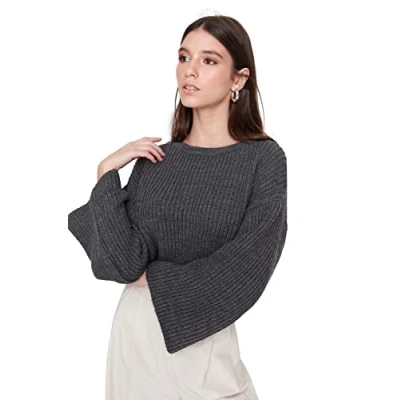 Trendyol Women Oversize Basic Crew Neck Knitwear Sweaters, Anthracite, M