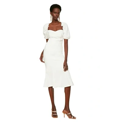 Trendyol Women Party Midi Basic Fitted Woven Dress, Ecru, 42