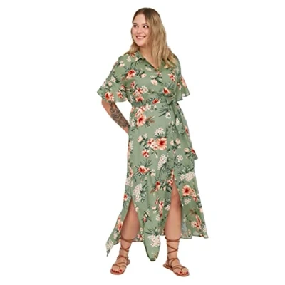 Trendyol Women Plus Size Maxi Basic Slim Woven Dress, Multicolor, 46
