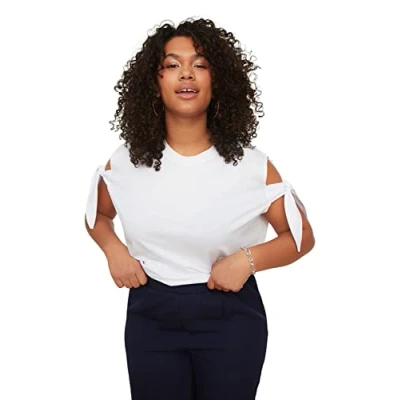 Trendyol Women Plus Size Regular Basic Crew Neck Knit T Shirt, White, XXL
