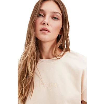 Material Composition: 100% Polyester Occasion: The Beige Relaxed fit Sweatshirt is perfect for Casual/Casual occasions. Our Collection offers affordable fashion for every occasion and style – from casual & relaxed to smart & elegant. Trendyol Collection translates the latest runway trends into wearable outfits for your wardrobe. Design: This Basic Knit Sweatshirt for Women has Long sleeve Crew neck Plain pattern. It is Regular fit. If you are in between size,please size up. Please check the product label for detailed care instructions.
