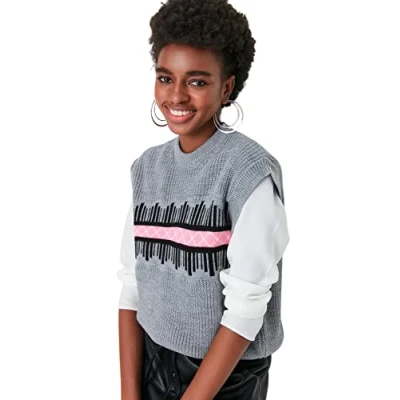 Material Composition: 100% Acrylic Occasion: The Gray Regular fit Sweater is perfect for Casual/Casual occasions. Our Collection offers affordable fashion for every occasion and style – from casual & relaxed to smart & elegant. Trendyol Collection translates the latest runway trends into wearable outfits for your wardrobe. Design: This Basic Knitwear Sweater for Women has Short sleeve Crew neck Ethnic pattern pattern. It is Regular fit. If you are in between size,please size up. Please check the product label for detailed care instructions.