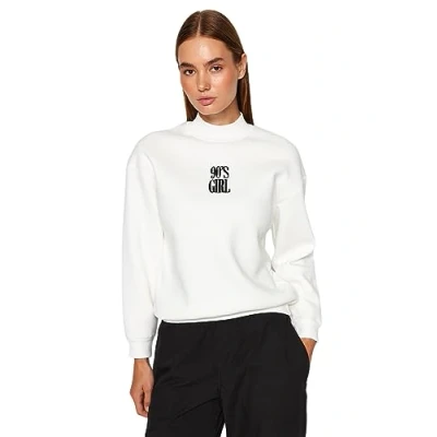Material Composition: 49% Cotton,46% Polyester,5% Viscose Occasion: The Weiß Regular fit Sweatshirts is perfect for Casual occasions. Our Collection offers affordable fashion for every occasion and style – from casual & relaxed to smart & elegant. Trendyol Collection translates the latest runway trends into wearable outfits for your wardrobe. Design: This Basic Knitted Sweatshirt for Women has Long Sleeve Turtleneck Motto pattern. It is Regular fit fit. If you are in between size,please size up. Wash at a maximum temperature of 30°C. Do not use bleach. Do not tumble dry. Iron at low temperature. Do not dry clean.