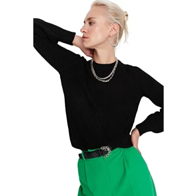 Material Composition: 100% Acrylic Occasion: The Black Regular fit Sweater is perfect for Casual occasions. Our Collection offers affordable fashion for every occasion and style – from casual & relaxed to smart & elegant. Trendyol Collection translates the latest runway trends into wearable outfits for your wardrobe. Design: This Basic Knitwear Sweater for Women has Long sleeve Standing collar Plain pattern. It is Regular fit. If you are in between size,please size up. Wash at a maximum temperature of 30°C. Do not use bleach. Do not tumble dry. Iron at low temperature. Please check the product label for detailed care instructions.