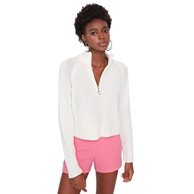 Material Composition: 100% Acrylic Occasion: The Ecru Regular fit Sweaters is perfect for Casual occasions. Our Collection offers affordable fashion for every occasion and style – from casual & relaxed to smart & elegant. Trendyol Collection translates the latest runway trends into wearable outfits for your wardrobe. Design: This Basic Knitwear Sweater for Women has Long Sleeve Standing collar Straight pattern. It is Regular fit fit. If you are in between size,please size up. Please check the product label for detailed care instructions.
